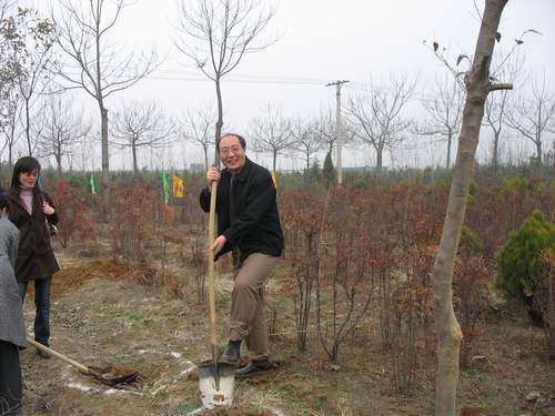 下午天气晴朗,阳光明媚,老师们情绪高涨,热情似火,在前往植树地点途中老师们纷纷畅谈植树活动的意义,心中的愉悦溢于言表。到达植树场地后,老师们有秩序的取铁锹,搬树苗,一个个干劲十足。国贸系张主任身先士卒,带头挖起树坑,一锨一锨,不一会儿完成一个合格的树坑,老师们也都纷纷卷起袖筒,大干起来,有的挖树坑,有的抬树苗,期间时时响起老师们爽朗的笑声。