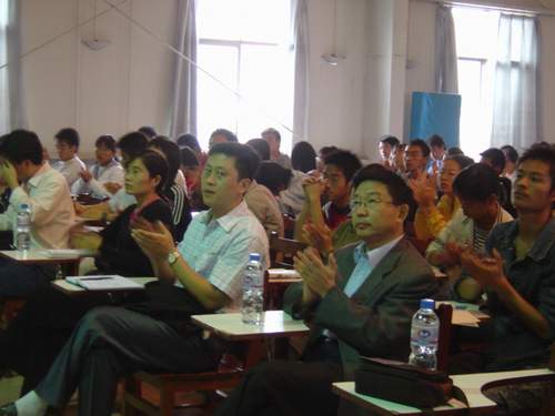 9月28日上午8点,鲁献启教授莅临龙湖报告厅,给我系06级新生做了一场关于“感恩·奉献”的报告。经理崔慕岳教授,系主任何伟博士出席了会议。