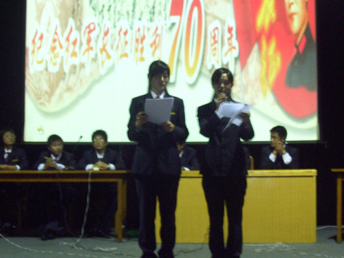 为纪念长征胜利70周年,重温红色经典,发扬长征精神,国贸系于10月19日晚在龙湖报告厅举行了以“纪念长征胜利70周年主题教育专题2“为题的知识竞赛。系党委副书记张小雁老师及辅导员秦童,王超老师出席了这次知识竞赛。