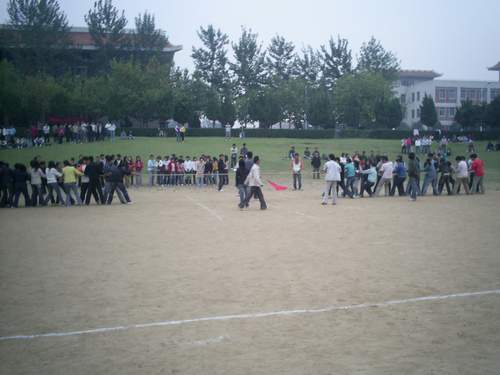 为了增强07级新生班级的凝聚力,丰富新生的课余生活,为他们提供更多的交流机会,在国贸系体育部组织下,国贸系07级新生于10月10日至16日举行了一次拔河比赛活动,07级16个新生班参与了此次比赛。各班经过精挑细选组织了一支支有实力的拔河队伍,虽然不能说个个力大无穷,但大家都精力充沛,斗志昂扬,体现出一种决不服输的精神。