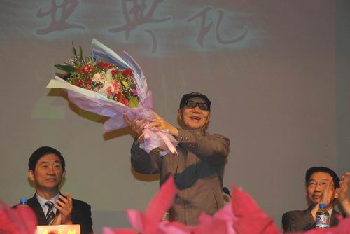 在典礼开始之前,国贸系毕业生马冰冰同学代表全体毕业生向创办人敬献了鲜花。典礼在庄重的中华人民共和国国歌声中拉开帷幕。