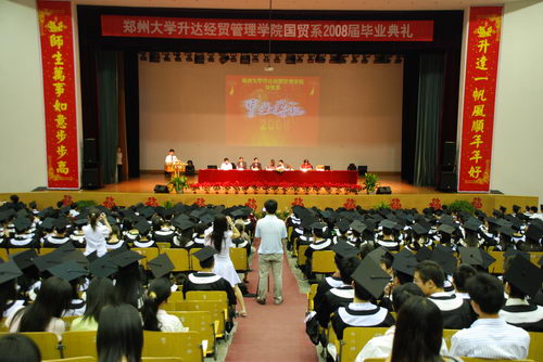 6月17日上午9时,思源会馆内华光异彩,喜气盈盈,国贸系2008届毕业生毕业典礼在这里隆重举行。国贸系577名毕业生怀着激动的心情参加了此次激动人心的典礼。