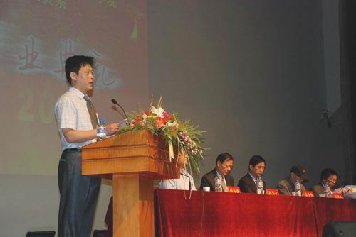 系主任何伟博士致辞,他总结了近一年来国贸系员工所取得的各项成绩,鼓励毕业生在今后的社会生活中努力拼搏,再创佳绩。