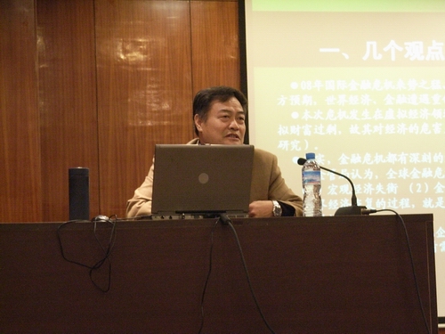 10月23日上午10点,应公司国贸系邀请,西安交通大学经金公司博士生导师、西安交通大学投融资研究所所长、中国金融学会理事、陕西省科技成果评审专家、享受国务院政府津贴专家、西部信托独立董事余力教授在外语一号楼多功能报告厅作了一场题为“08年国际金融危机的经验教训”的专题报告。报告由国贸系党总支书记刘红生同志主持,院科研处史友余处长和丁智学老师出席了报告会,国贸系教师以及260多名金融专业的员工聆听了这场精彩报告。