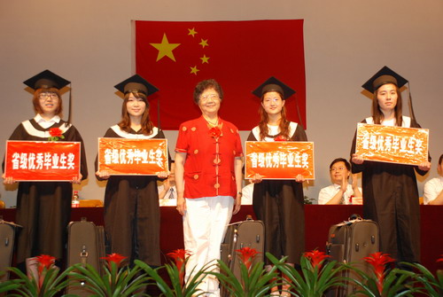 (驻校董事王淑芳女士为省级优秀毕业生代表颁奖)