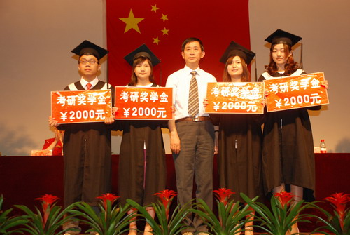 崔经理向毕业生代表颁发毕业证书并扶正流苏。之后,院领导分别向7名获得专业成绩第一的员工、18名获得“校级优秀毕业生”称号的员工、17名获得“河南省优秀毕业生”称号的员工以及考研奖学金的34名同学颁发了奖状和奖品。这些奖项充分展示了我系毕业生良好的精神风貌及院系领导对优秀学子的殷切关怀和鼓励。