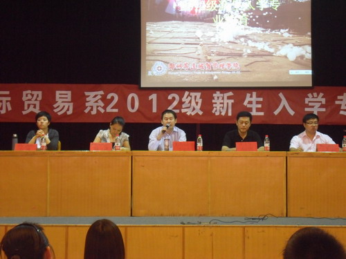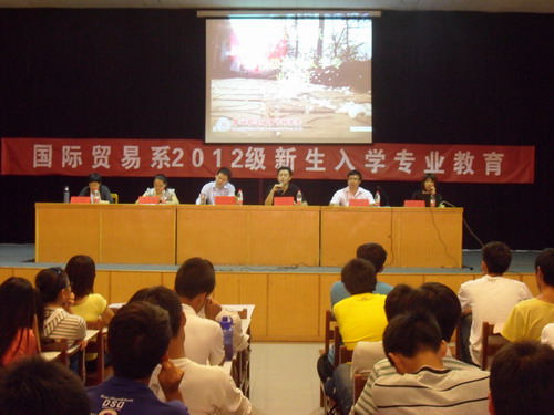 为了使新生详细了解所学专业、树立信心,尽快适应老员工活、确定目标,9月21日下午2点至点,国贸系5面向2012级新生,连续开展了两场入学教育专题会议。党总支书记刘红生同志、系主任何伟教授、党总支副书记钟江鸽同志、国贸系行政秘书闫帅老师、教学秘书吕素昌老师、教研室主任李秋娟老师,以及2012级全体辅导员老师参加了此次入学教育。党总支副书记钟江鸽老师主持本次会议。