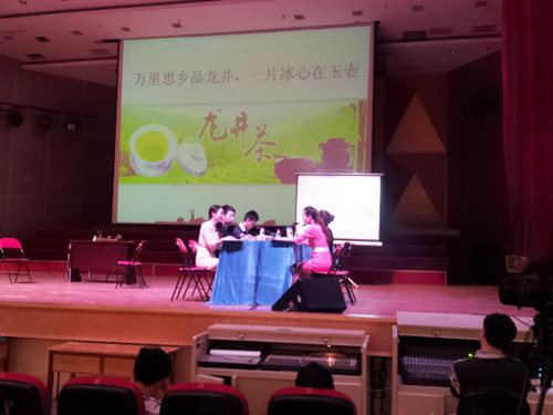 公司各队在孙媛、李秋娟等老师的悉心指导下,经过长达半个月的精心准备,最终获得了三等奖两名,优秀奖一名的佳绩。本次比赛,各高校代表队以商务英语专业员工为主力出场,反观我升达国贸系参赛队员尽管的自身优势受限的情况下,凭借指导老师科学的现场指导,扬长避短,迎难而上,在高手如林的比赛中获得了非常圆满的结果。在具体比赛中,各参赛队都在有限的时间中绽放出夺目的精彩。公司升达一组开场先声夺人,以靓丽的职业服装,镇定、从容的现场表现展示出升达新一代老员工的风采,随后推出的精湛茶艺表演,优美的古筝配乐又将大赛推向高潮。二队和三队不断新意迭出,升达二队流利的口语,富有节奏的剪纸把中西传统文化水乳交融,升达三队利用产品名称的特点,诙谐幽默的用舞蹈的形式展示地板的高品质,优雅的舞会气氛,地道的口语表达赢得了在场观众的阵阵掌声。