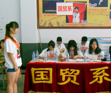 为方便新生办理入学手续,积极融入校园生活,2013年8月30日国贸系迎新团队在体育馆、行政大楼设置接待处为新生服务。在国贸系行政秘书闫帅老师、辅导员张颢老师带领下,团学会全体成员积极投入到此次迎新活动中。
