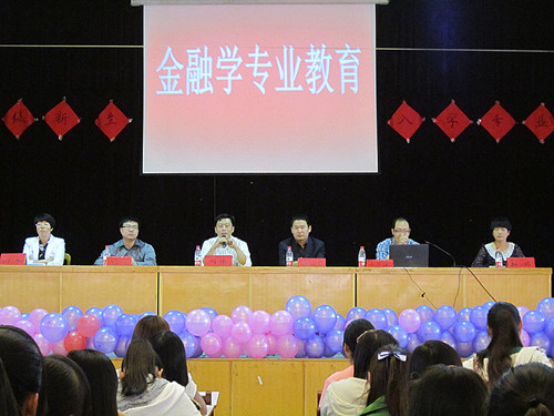金虎斌老师、卓风莉老师重点讲解了国贸和金融两专业学习的有关内容。他们利用图表、数据分析指明了为什么学习金融和国贸专业,同时为大家点明同学们大学四年学什么,如何学好它们。这为同学们解除了疑惑,坚定了新生们的学习信心。
