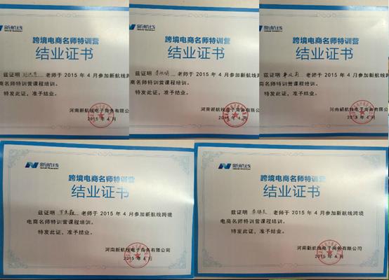 2015年4月末,为了使国际贸易课程的设置与实际应用接轨,也为了使专业课老师更好的上好我系的特色课程《电子商务与网络营销》,我系特安排刘秋娟老师、卓凤莉老师、刘洪芹老师、罗秉鑫老师和秦锦灵老师参加了河南新航线组织的跨境电商“名师特训营”。
