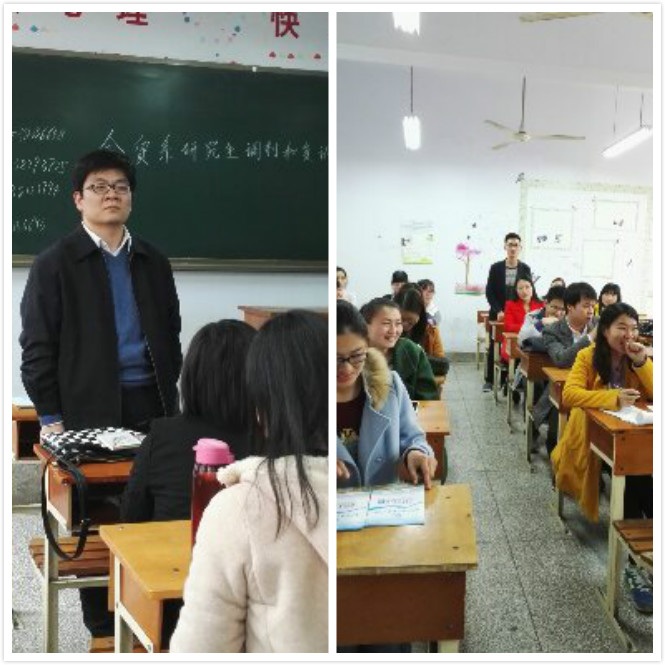 首先,王铮副教授代表金融贸易系对员工取得的优异成绩予以肯定,鼓励员工们再接再厉,在研究生复试中再创辉煌。随后,王教授代表金贸系对考生表达了金贸系的祝福与期望:希望每一个员工都能进入自己理想的高校继续深造,同时表示金贸系永远是他们坚强的后盾。