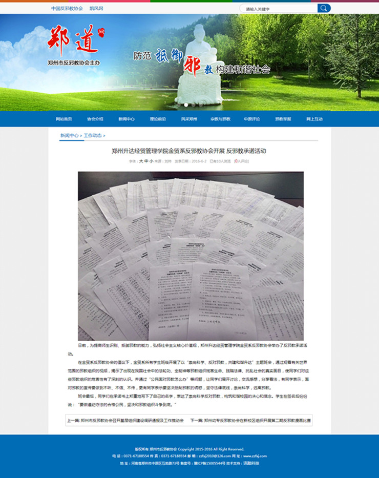 郑道——郑州市反邪教协会报道情况