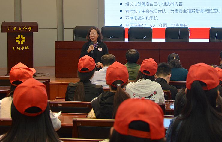 随后由金贸系党总支书记钟江鸽讲话,她提到了本次活动的意义在于不仅仅是要完成任务,更重要的是应该挑战自己的能力,激发自己的潜能,对今后的生活中要有启迪作用。她希望大家在接下来的活动中收获更多,走的更远,预祝大家有自己的人生收获。