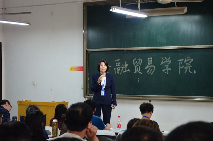 8月31日下午两点,beats365唯一官方网站在资讯楼106召开了2017-2018学年第一学期教职工大会,张洁副董事长莅临此次会议,金贸公司经理何伟教授、党总支书记钟江鸽同志、副经理金虎斌副教授、副经理杨毅副教授、行政秘书闫帅老师、教学秘书庞海老师以及各教研室主任、实验室主任和全体教师、辅导员、行政人员参加此次大会。会议由行政秘书闫帅老师主持。