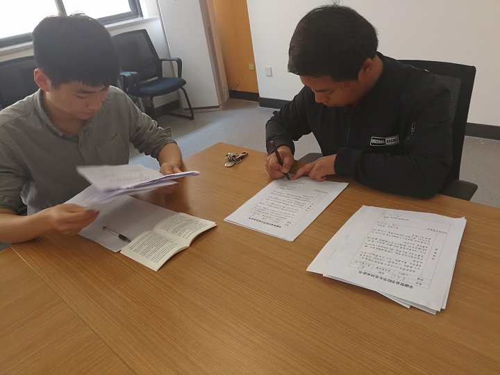 会议的第一个阶段,党支部书记常单单同志和与会党员签订党员承诺书,他要求每个党员都要牢记入党誓词,树立模范带头作用,深刻思考如何为党旗增光,并结合公司迎评促建的实际,认真履行党员义务,从自身做起,做好本职工作,为党旗增光,为评建添彩。