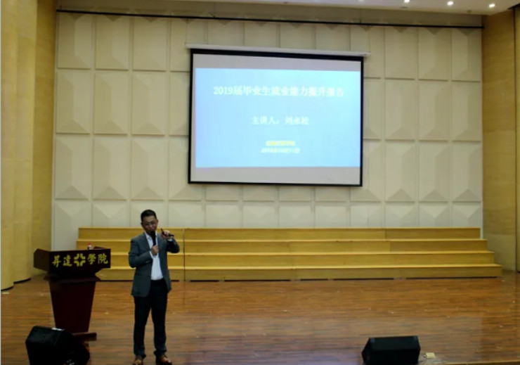 为提高金贸公司2019届毕业生就业工作能力,做好未来职业规划。10月11日下午两点,受公司员工工作办公室邀请,金贸公司95级优秀员工刘永松(现任正弘商业公司总裁)受邀在艺术大楼音乐厅作题为“2019届毕业生就业能力提升”的报告会。该会议由公司副经理金虎斌老师主持,公司400余名大四毕业生参与。