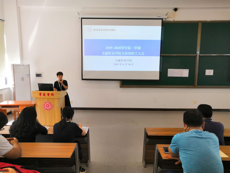 8月30日上午11点,金贸公司全体教职工在教学3号楼107召开学习党政工作报告专题会议。会议由金贸公司教学秘书张阳老师主持,参加此次会议的有金贸公司经理何伟博士、党总支书记钟江鸽同志、行政秘书王娟老师及全体教职员工。