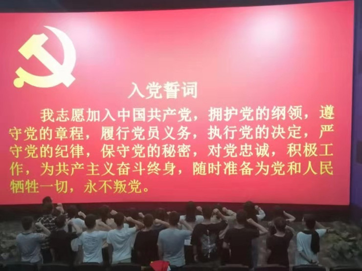 随后,全体党员观看了影片《我和我的祖国》。影片从开国大典第一面五星红旗的升起,到影片最后的纪念抗战胜利70周年阅兵式的故事,每一部分的故事都使人内心无比震撼。中华人民共和国第一个旗杆高22.5米,第一面国旗长460厘米、宽338厘米,演奏一遍国歌时间是46秒,国旗到顶时间是2分07秒......这是科学、严谨的数字,是可以数清的数字。然而在共和国七十年历史中,还有无数的数字是数不清的,他们是原子弹实验的工作人员、是建设人员、是保卫祖国的士兵以及每一个中国人,是十四亿人民万众一心、众志成城。不是数字有意义,而是我们赋予了数字以意义;电影巧妙的从七个年代选取了各个历史时期的故事,打造了强烈的“时代情怀”,让不同年龄层的人们都能在影片中“找到当初的自己”。一秒钟放在二十八年的奋斗中,放在英国对香港一百五十四年的殖民统治中,放在共和国七十年的发展中,可以说是微不足道。但是,一秒我们都不能多等。在一秒钟里,有的人用来说话,而我们每一秒是都是用来在行动;电影讲述的不是我的祖国,而是“我”和“我的祖国”,重点是“小人物”和国家的关系。在新中国整个发展、建设中,那些做出了很多贡献却默默无闻的人们,他们都是伟大的,都是值得尊敬的;白昼的流星滑过的不仅是中华大地的天空,更是在平凡人的心灵上滑出点燃希望的星火。青年兴则国兴,青年强则国强。我们这些祖国未来的接班人要跟上时代的步伐,严格要求自己,要符合国家栋梁的基本条件!观影结束后,每位党员同学的心中都受到了强烈的冲击,并充满着热情!