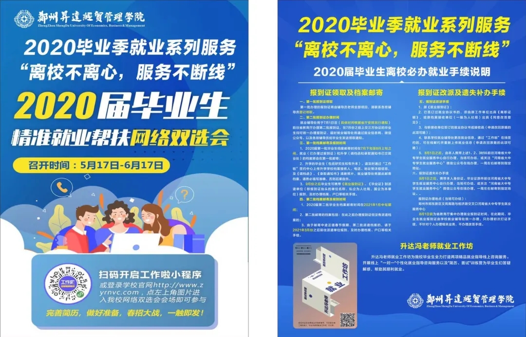 为了向毕业生提供更广阔的就业渠道以及就业岗位,金贸公司多次召开就业工作推进会、就业培训指导会、就业工作阶段总结会等会议,创新工作方式,积极引导毕业生适应“云招聘”形式,通过“云服务”提升就业服务质量,“云指导”助力毕业生精准就业。鼓励毕业生根据自身的个性特点选择适合自己的职业,与此同时还鼓励老员工自主创业。通过“一人一策”进行分类引导,精准施策,扎实推进毕业生就业工作的有效开展。公司就业处“冯老师就业工作坊”为金贸学子开设了专场,更是搭建了“云端就业指导”、“空中宣讲及双选会”、“线上就业手续办理”、“空中基层就业服务”四大主题,精心打造“离校不离心,服务不断线”系列活动。