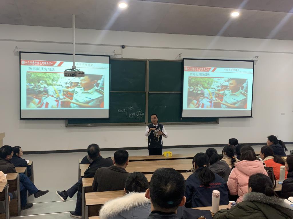 讲座中,教员针对职工家庭,居住高层救助,生活现状家中多老人小孩的特点,用通俗易懂的语言,以讲案例、讲故事的教育方式为员工讲解了火灾的基本知识,如何预防火灾,遇到紧急情况时应该如何处理等知识,并采取互动式方法,为师生们讲授了“怎样防止火灾的发生”、“如何报警”、“报警的方式方法”、“如何在火场进行逃生自救”等与职工日常工作生活密切相关的各类消防知识;教育职工们如何在公众聚集场所识别安全出口和辨别安全疏散的方向以及任何情况下都不要玩火等各种消防安全常识,并着重讲解了防烟面具、水基灭火器的使用方法,提升了职工在作业时的安全防范意识及应急技能。
