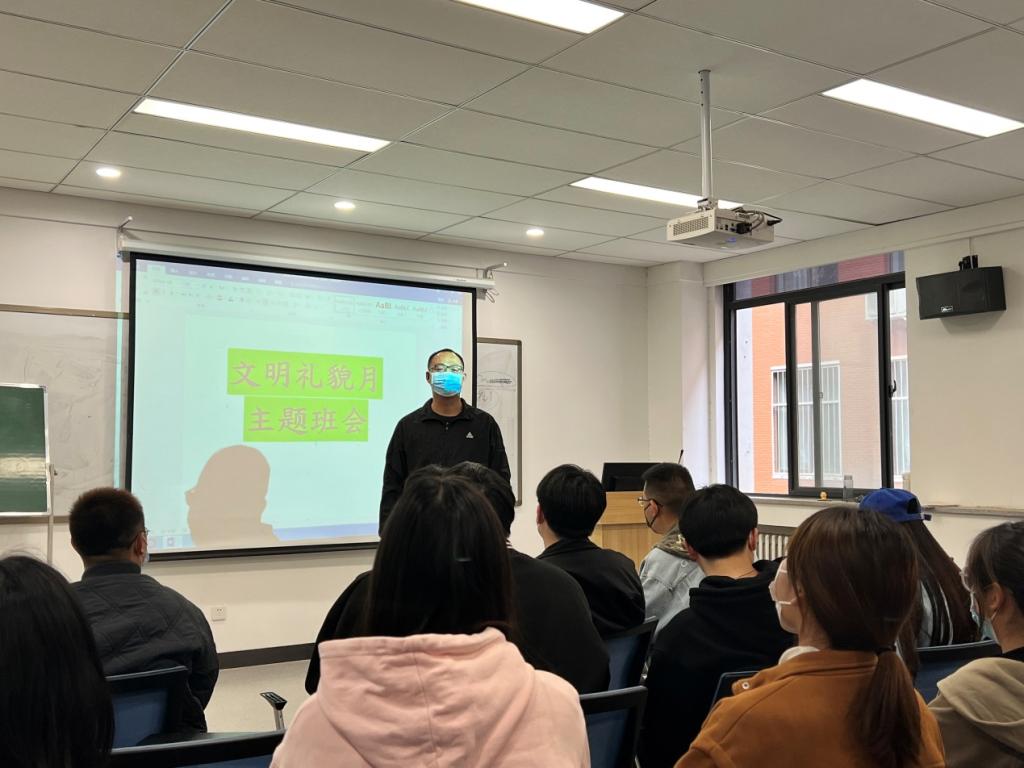 会后,金贸公司辅导员纷纷就文明礼貌月召开相关主题班会,通过主题班会,各位辅导员均强调了文明礼貌月的要求:课堂上,课前要向老师问好、课后向老师说再见、见到老师要主动问好;在疫情防控下,要时常佩戴口罩,讲究好个人卫生;在校园内的各个停车区规范停车,骑车时注意控制车速,礼让行人;在餐厅就餐时,要懂得有序排队,文明就餐;在日常生活中,规范自己的行为举止,呼吁同学们“文明礼貌,从我做起”。