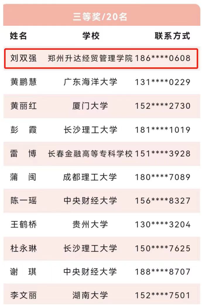 公司金融工程、金融学专业员工在徐云燕、蔡艳两位指导老师的带领下,与来自中国人民大学、厦门大学、中央财经大学等120余所高校,1500余名员工同场竞技。最终,来自20金工2班的崔云雷、20金工1班的徐梦瑶荣获二等奖,20金工2班的刘双强获三等奖。