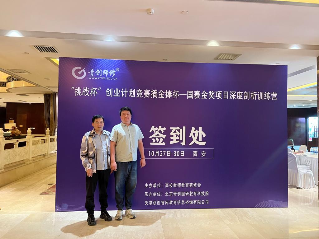 2023年10月28日-30日,高校教师教育研修会在西安举办“挑战杯”创业计划竞赛摘金捧杯一国赛金奖项目深度剖析训练营,公司派实验室主任王宇鹏和双创专员张聚伟参加。