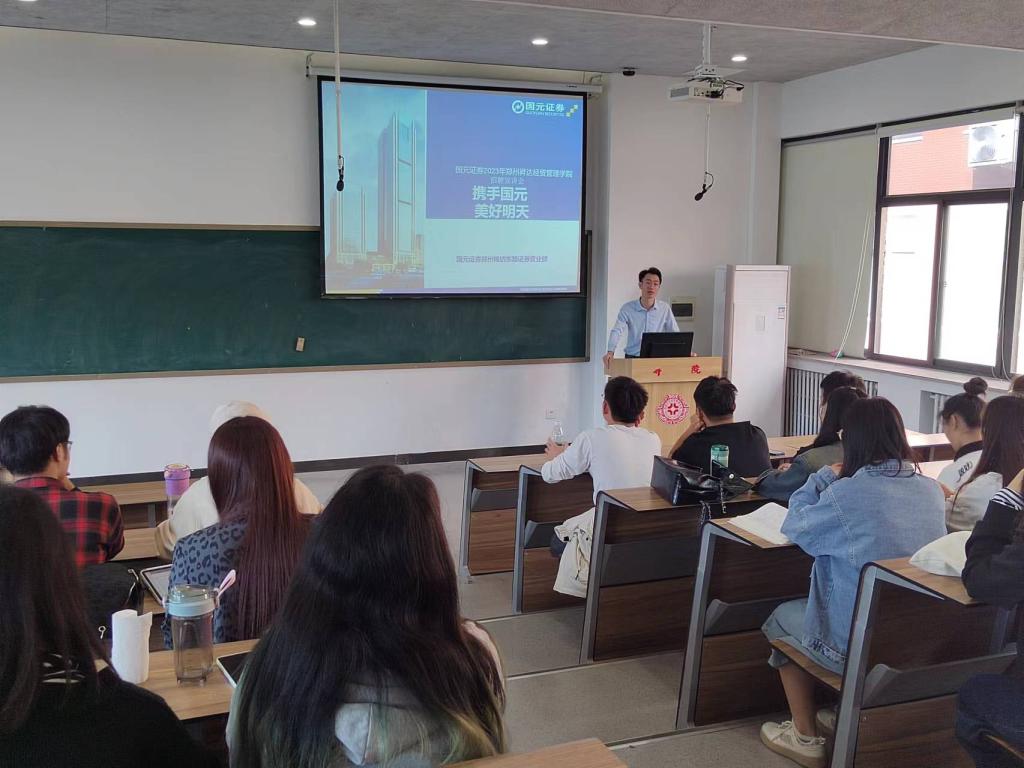 宣讲会上,国元证券主要从老员工就业指导观念养成、国元证券以及营业部介绍、招聘岗位介绍、入职薪资待遇等几方面进行宣讲,并进行了员工的提问环节,围绕员工关心的公司文化、晋升空间等问题做出了详细解答,让同学们对国元证券的进入国元证券的待遇情况、发展前景有了更深的理解。宣讲会后,同学们积极投递简历。