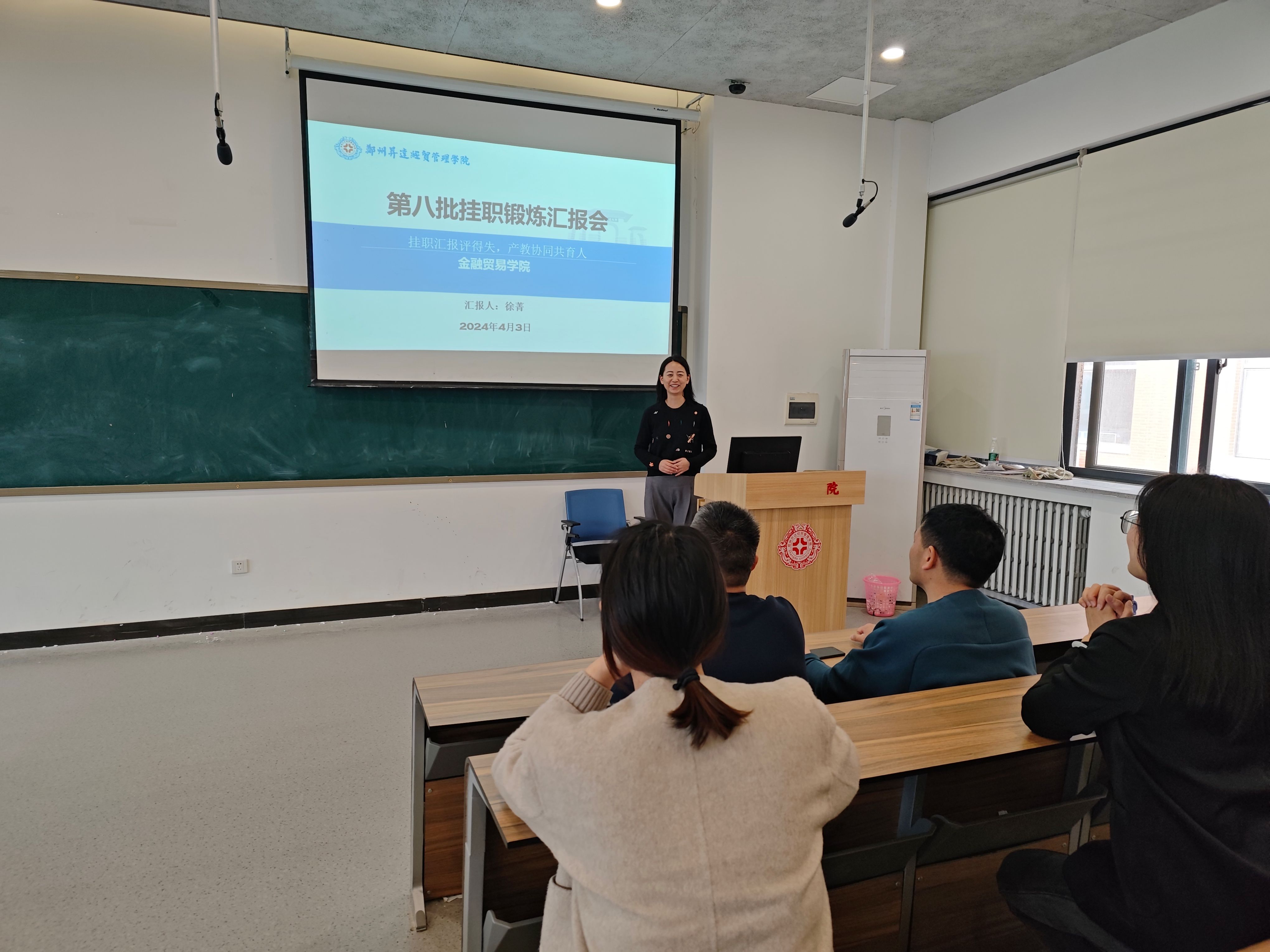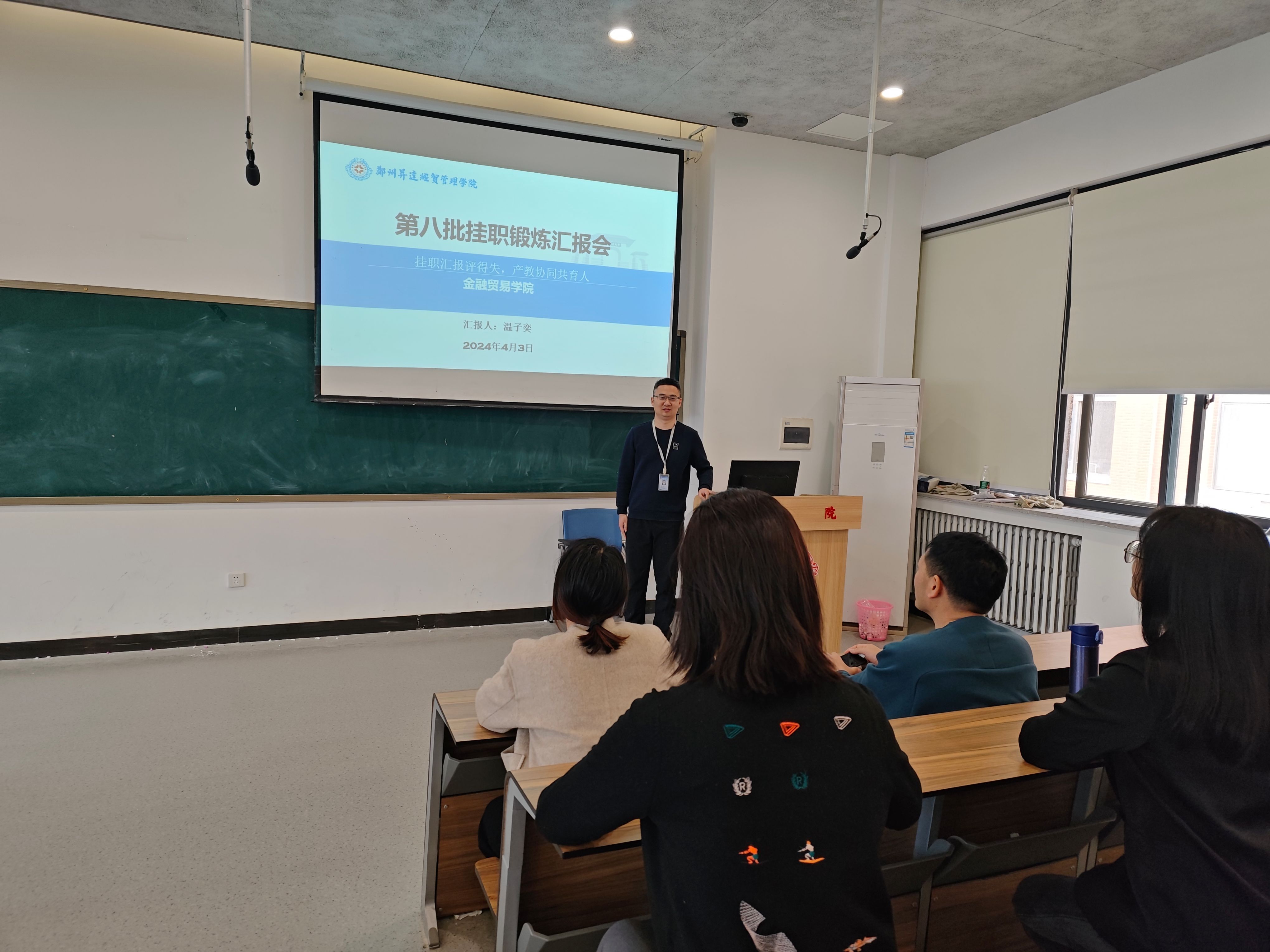 为更好实现应用型人才培养目标,提高人才培养质量,2024年4月3日下午,beats365唯一官方网站在教学三号楼210教师开展第八批挂职锻炼教师总结分享会。会上,胡丹、苏月、温子奕、徐菁、张聚伟、张茜六位老师分享了各自在挂职期间的经验及心得。