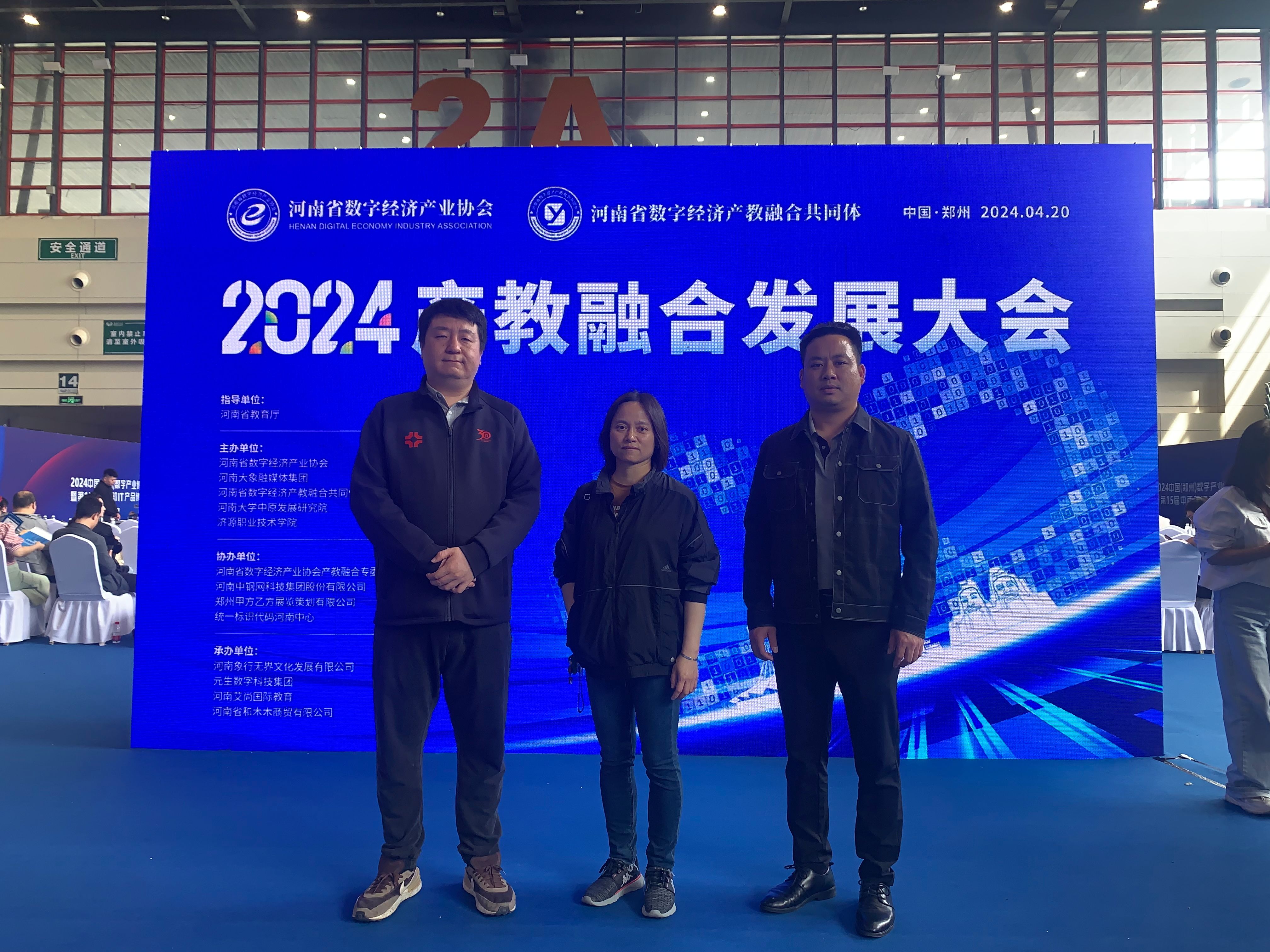 2024年4月20日,由河南省数字经济产业协会举办的2024产教融合发展大会在郑州国际会展中心举行。公司副经理杨毅,实验室主任王宇鹏和产教融合专员卢国君受邀参加。教育厅领导吴廷伟,河南省数字经济产业协会长刘向阳等出席开幕式并致词。他强调产教融合是推动河南省数字经济发展的关键力量,各单位要充分发挥各自的作用,政府、企业、高校等方面要充分合作,助力河南省数字经济产业迈向更高水平。