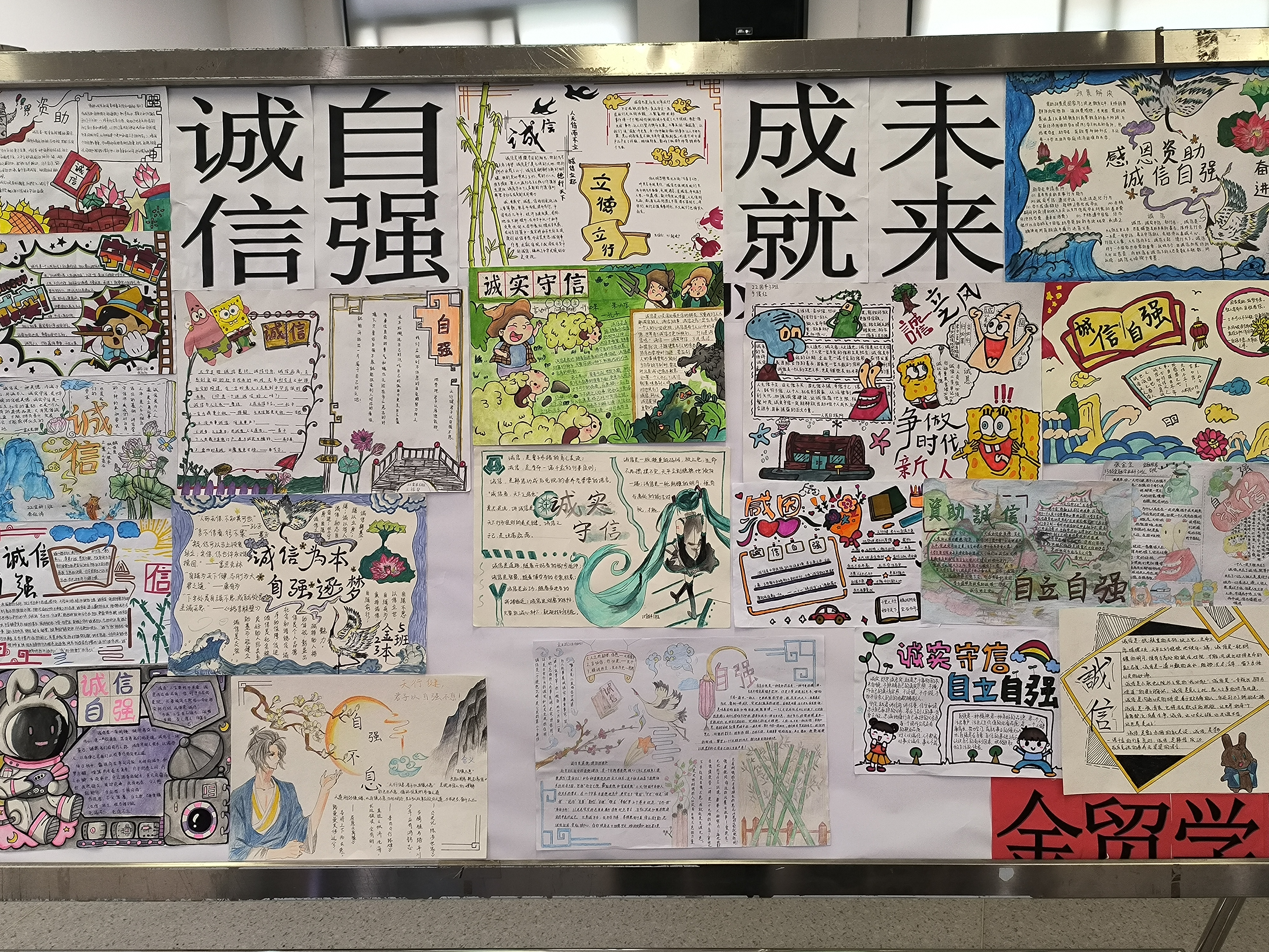 活动伊始,各班纷纷踊跃积极参与,准备手抄报的制作。在准备过程中,同学们不仅搜集了关于诚信自强的丰富资料,还通过创意设计,将诚信与自强的理念融入到手抄报的画面和文字中,展现出了各自的独特风采。