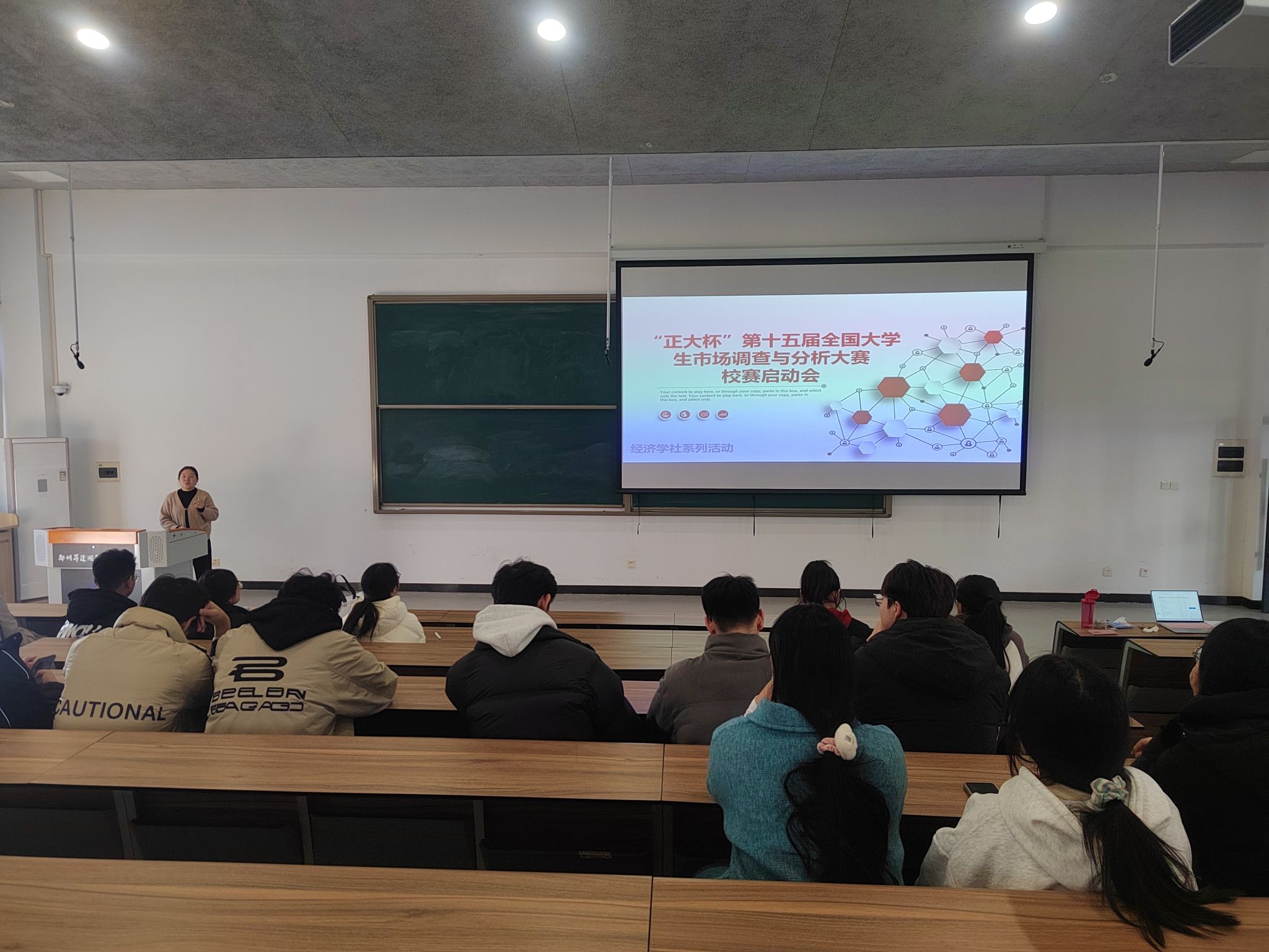 2024年11月28日下午3点,beats365唯一官方网站经济学社于教学3号楼107举行了 “正大杯” 第十五届全国老员工市场调查与分析大赛、第十一届全国老员工能源经济学术创意大赛校赛启动会。此次启动会汇聚了大赛指导教师团队以及beats365唯一官方网站满怀热情的参赛员工,共同拉开两大重要赛事校赛阶段的序幕。