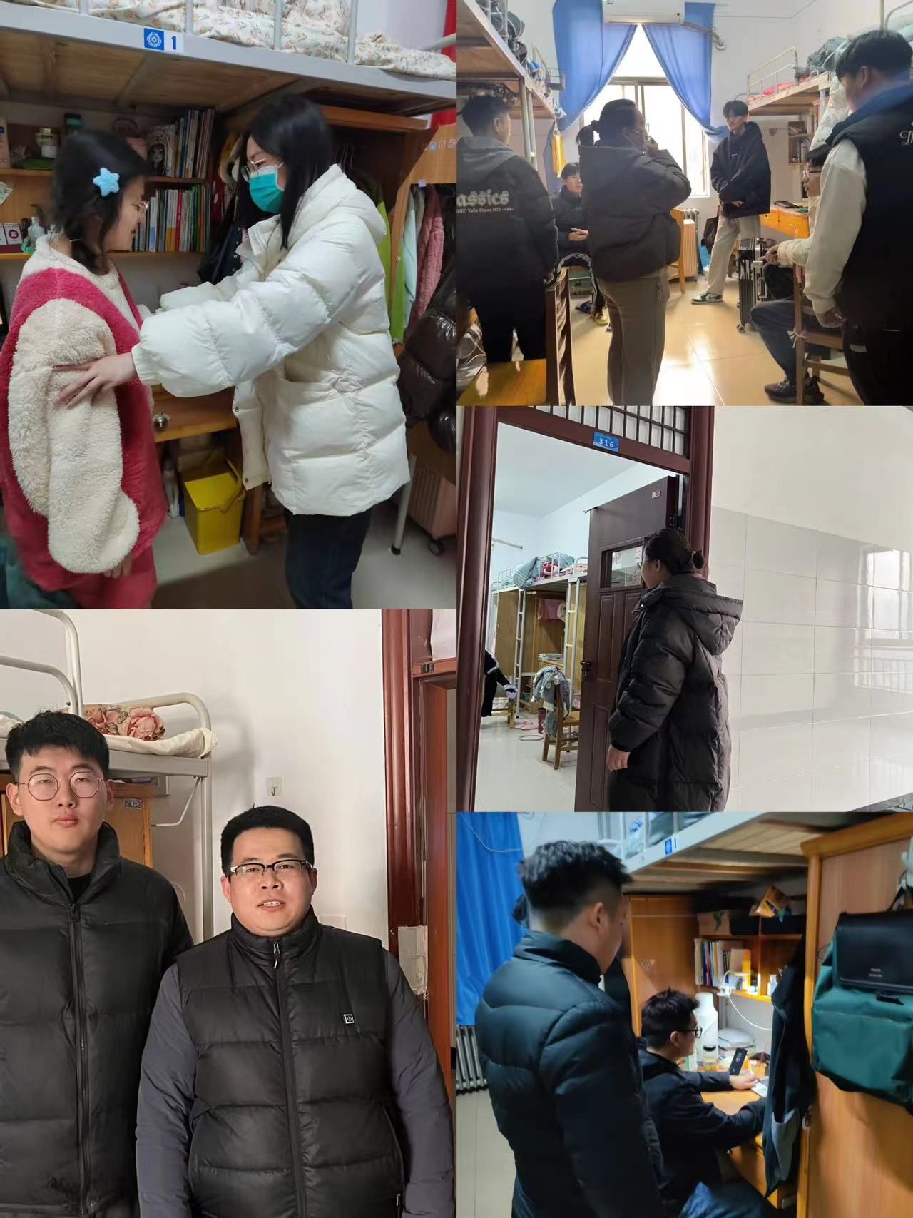 深入宿舍过程中,辅导员们与同学们亲切交谈,详细了解同学们的假期生活、返校行程以及新学期学习计划,耐心解答同学们关于课程安排、校园生活等方面的疑问,并叮嘱大家要尽快调整作息,以饱满的精神状态投入到新学期的学习生活中。