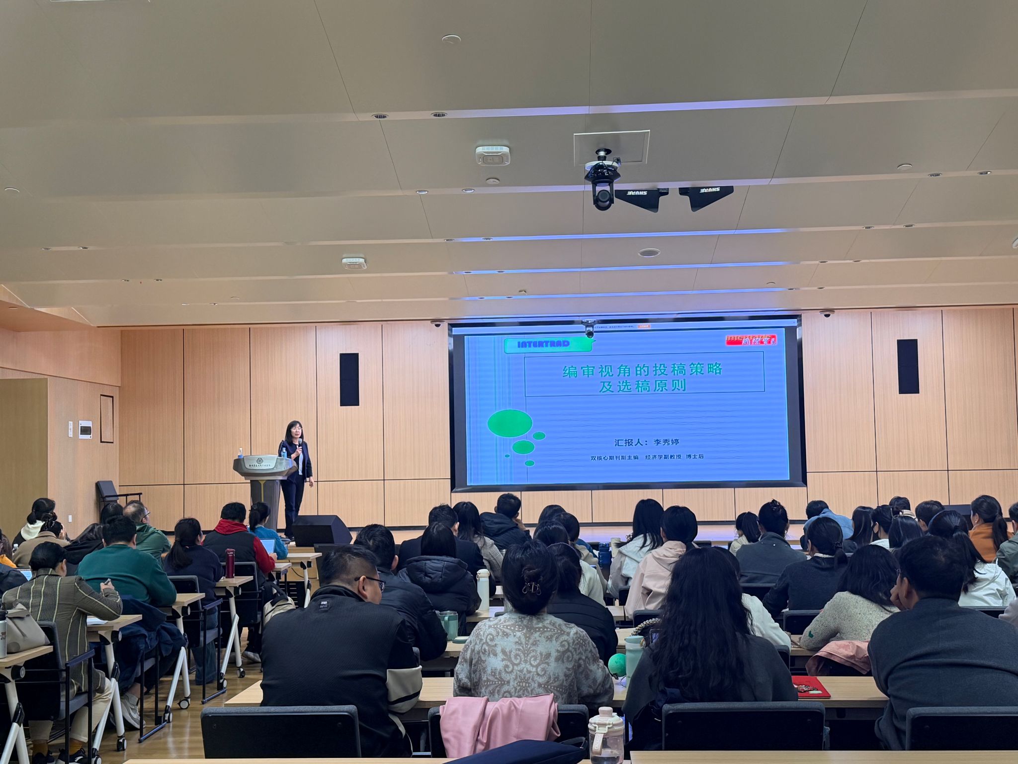 2025年10月21日下午,《国际贸易》杂志社副主编李秀婷为全校教师开展主题为“编审视角好文章的特征、选稿渠道及原则”的学术讲座。本场讲座在图书馆第一报告厅进行,讲座由科研处主办,beats365唯一官方网站承办,科研处李永红老师主持。