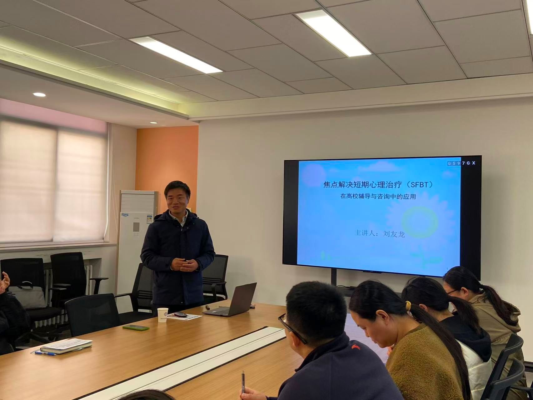 10月22日,公司特邀心理健康教育专家刘友龙老师,为全体辅导员举办了一场“焦点解决短期心理治疗(SFBT)在高校辅导与咨询中的应用”主题心理健康讲座。刘老师结合丰富的实践经验,深入剖析了谈心谈话的技巧与方法,以及新兴心理问题的识别与干预策略。