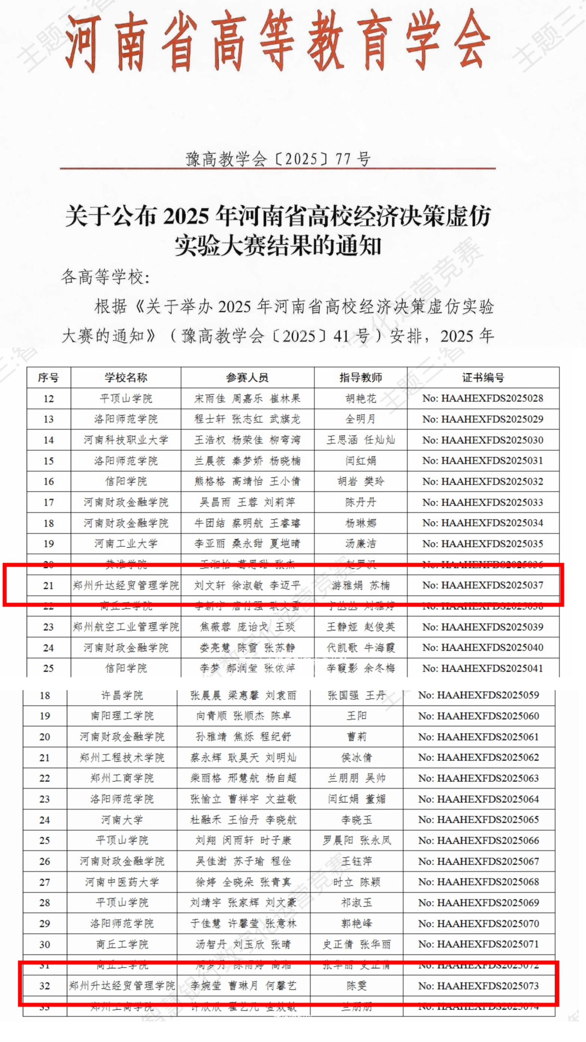 金贸学子在2025河南省高校经济决策虚仿实验大赛中荣获佳绩