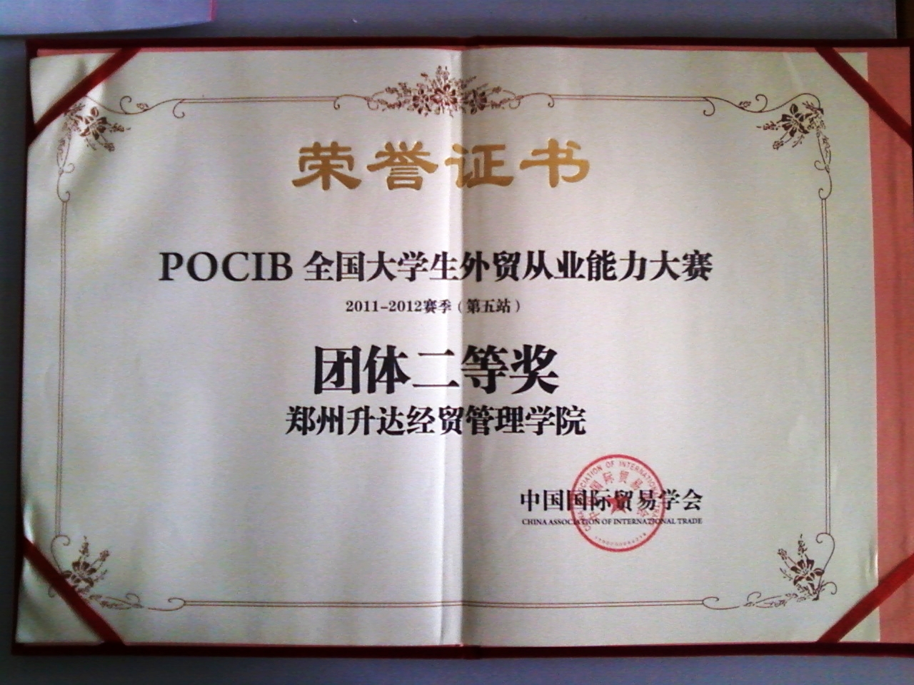 2012年8月7日,由国际贸易学会主办、POCIB全国培训中心承办的POCIB全国老员工外贸从业能力大赛年度颁奖大会在郑州顺利举行,国贸系李秋娟老师与卓凤莉老师参加了此次会议。