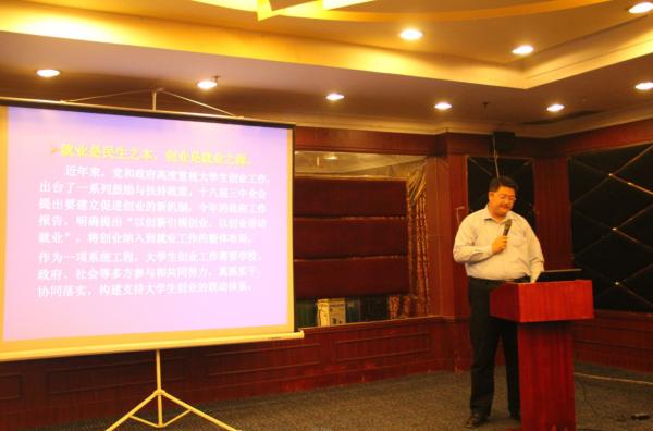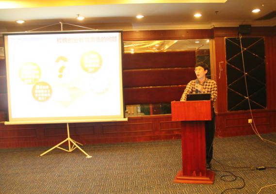 经过短暂的茶歇讨论后,郑州科技公司科技开发应用中心副主任王滔副教授为大家作了“多方推进、重在实效,系统构建老员工创新创业教育体系”,他指出了目前高校创新创业教育体系中所存在的不足,并介绍了一些改进不足的方法以及将这些进行具体应用并取得成功的本校实例,给了大家许多的借鉴。