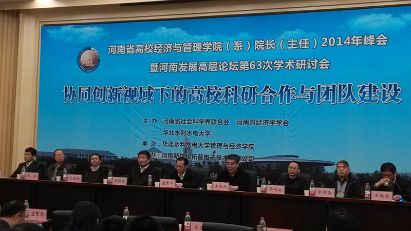 本次会议由河南省社会科学界联合会、河南省经济学学会和华北水利水电大学主办,华北水利水电大学管理与经济公司承办,河南新世纪拓普电子技术有限公司协办。会议邀请国家自然科学基金委管理科学部相关领导,大连理工大学研究生院常务副经理、长江学者特聘教授胡祥培教授等经济管理领域的著名专家、学者与会指导,并就国家自然科学基金项目申请、经济管理公司科研管理与团队建设等作专题报告。