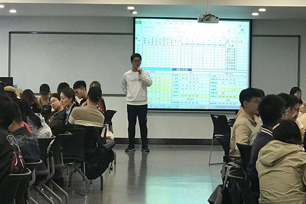 接着,各个沙盘模拟小组的总经理、财务主管、商业间谍等分别做经验总结,他们结合这几天的实战分析了此次沙盘实训中各自小组存在的问题,成功及失败的原因,在分享中很多同学表示通过此次实训使自己对企业经营有了较为全面的了解,认识到了团队协作在企业经营中的重要性,也深刻理解到了企业经营的不易和商场如战场这句话的含义,并对ERP行业有了新的认识与理解。