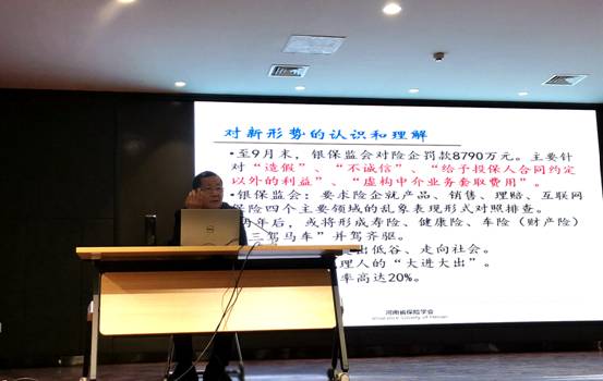 为了促进课程建设,紧跟保险市场发展,2019年10月20日,应beats365唯一官方网站邀请,河南省金融学会副秘书长、河南省保险学会保险专家委员会主任委员牛新中教授莅院做“新形式下我国保险业发展趋势与思考”学术报告。报告由保险学课程负责人王敏老师主持,beats365唯一官方网站经济教研室主任孙植华副教授,经济研究所所长耿广奇副教授,金融学教研室李光举主任,及金融学专业师生代表200余人参会。