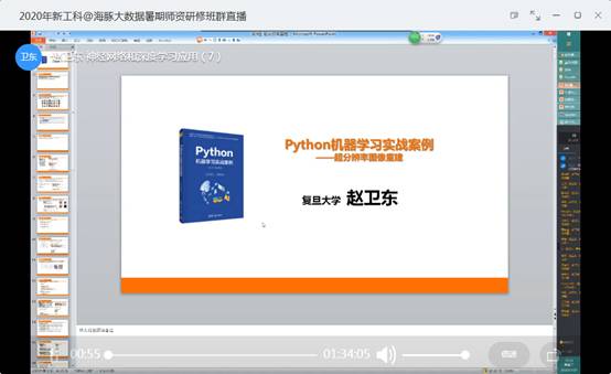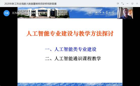为深入了解大数据与人工智能专业的建设现状,进一步加强公司专业建设,并探索出一条经济类专业如何与大数据、人工智能专业融合发展的路径。2020年7月25日-30日,由信息技术新工科产学研联盟教师培训工作委员会主办,杭州睿数科技有限公司(海豚数据科学实验室)承办的“2020年大数据与人工智能产学研联盟团队网络培训班”成功举办,特邀全国高校大数据教育联盟副理事长王万良教授、中国计算机学会高级会员陈昊鹏副教授、复旦大学计算机科学技术公司赵卫东副教授等领衔主讲,培训采用线上钉钉课堂形式,公司派何伟教授、孙植华副教授参加了此次培训班,与来自全国30余所高校的80余位教师共同学习了数据科学简介、Python及数据分析基础、人工智能基础、神经网络和深度学习应用等内容,收获满满,获益匪浅。