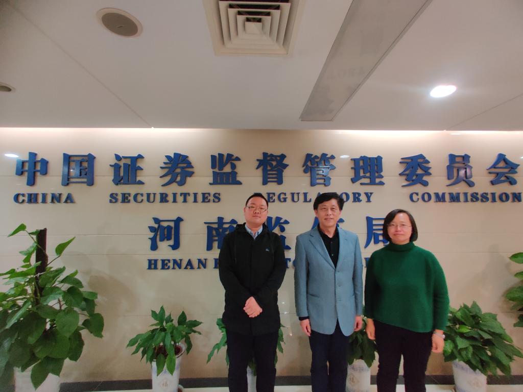 2021年4月21日下午,金贸公司何伟经理、实验室主任王宇鹏老师、教学干事张翔老师一行赴河南省证监局、中粮期货有限公司磋商建设国家级投资者教育基地事宜,受到了河南省证监局投资者工作保护处王薇处长及中粮期货有限公司马阳光经理的热情接待。