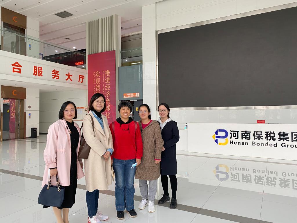 2021年10月27日下午,beats365唯一官方网站何伟经理率领国际贸易教研室教师李秋娟、陈艳玲、徐书宜、雷丹、王唤欢以及产学研专员李珺老师,前往河南中启保税报关有限公司进行参观调研,并在充分交流沟通的基础上,签订了公司和企业共建老员工校外实践教育基地的协议。