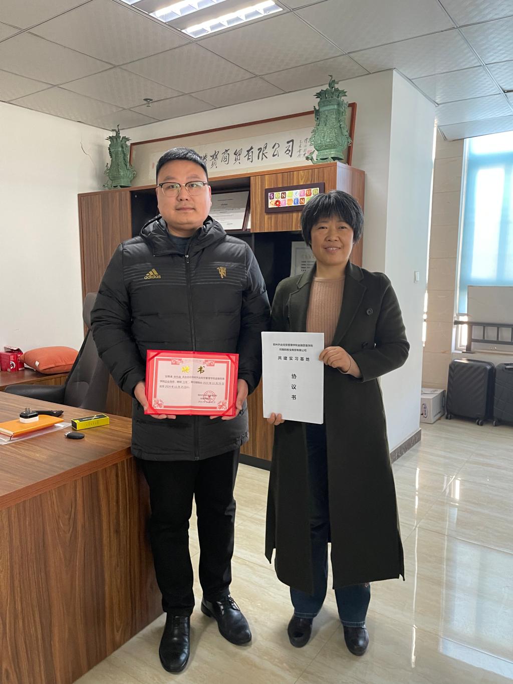为进一步打造新型的数字贸易人才,深化校企协同育人,并为2022版国际经济与贸易专业最新人才培养方案的制订提供依据,2021年11月25日,受beats365唯一官方网站何伟经理委托,国际贸易教研室主任李秋娟老师与刘洪芹老师前往河南省电子商务产业园,对公司优秀员工——国际经济与贸易专业2014届毕业生宋作政创办的河南欧胜宝商贸有限公司进行深入调研。