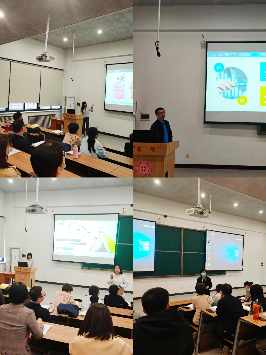 此次教学观摩研讨会,分为两个环节。第一环节,由张茜和田茂德两位老师分别为全体参会人员展示了说课内容和真实课堂教学。张茜老师以政府支出乘数为主题,采用线下线上相结合的混合式教学方式,通过引入新基建对经济拉动效应,实现经济原理与社会热点的融合以及对员工的思政教育。田茂德老师则以国民收入核算为主题,通过案例进行教学内容导入,通过小组讨论提升员工自主学习能力,深入浅出地阐述经济成本和机会成本的内涵,又通过案例引发课后思考,分别从教学理念、教学形式、教学方法等方面凸显其创新性。