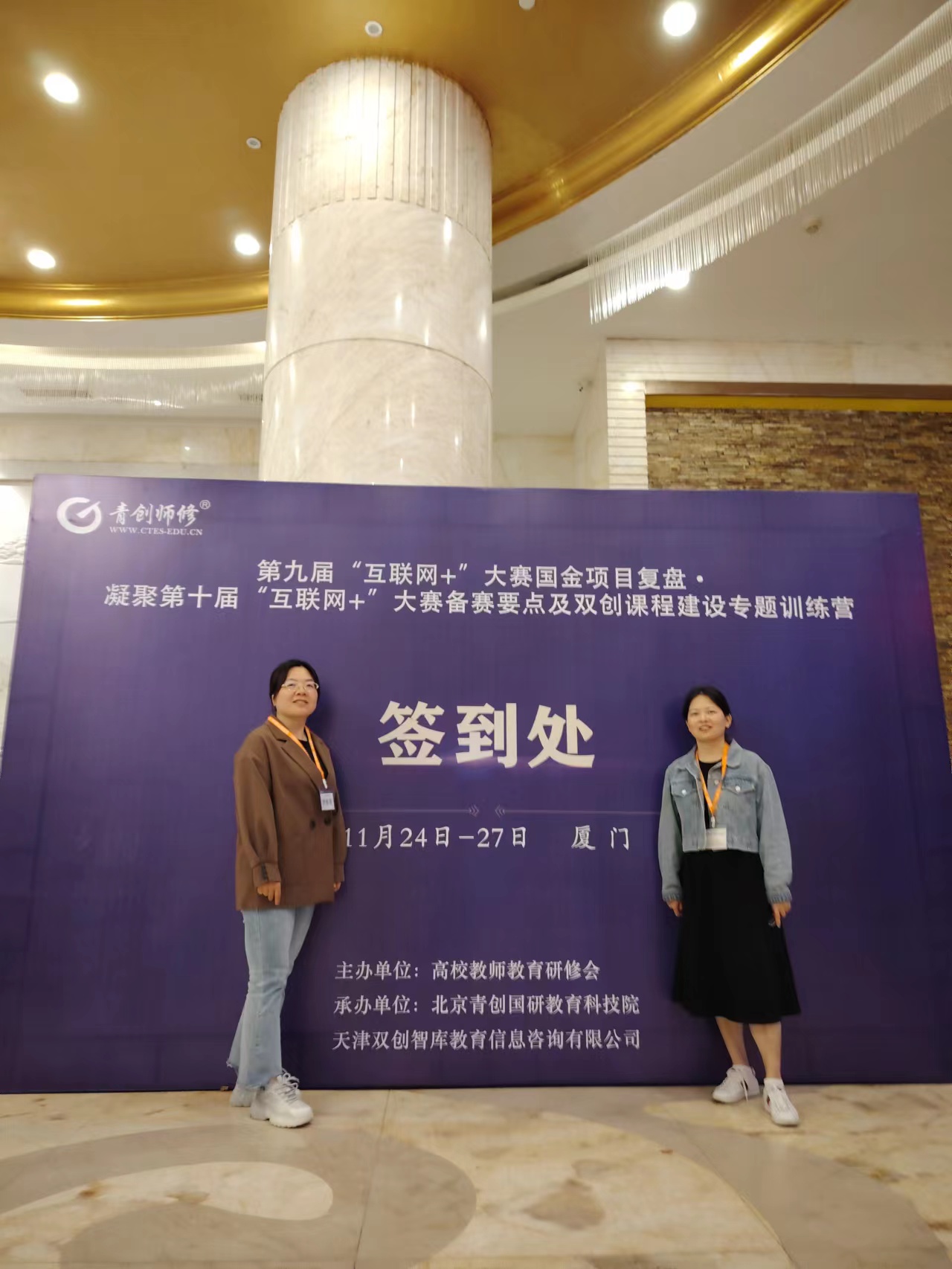 2023年11月24日-27日由高校教师教育研修会主办,天津双创智库教育信息咨询有限公司和北京青创国研教育科技院共同承办的第十届“互联网+”大赛备赛要点及双创课程建设专题训练营在厦门举办。为进一步提升公司教师的双创教育的能力,统筹推进教育、科技、人才工作,落实立德树人根本任务,传承和弘扬红色基因,激发公司员工创新创业热情,公司派刘丽燕和徐娜娜两位骨干教师参加此次培训班。