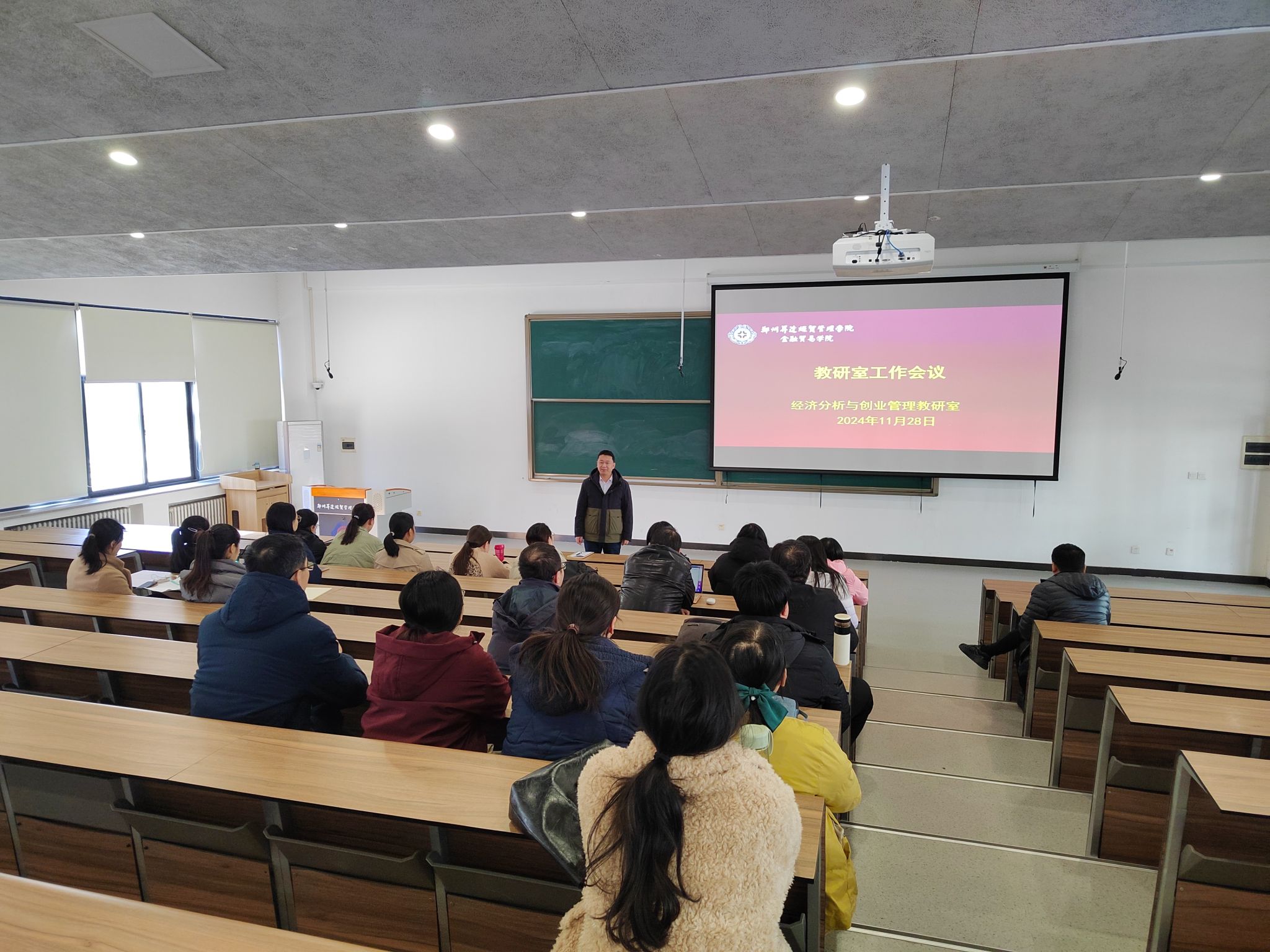 2024年11月28日下午,经济分析与创业管理教研室在3号教学楼107会议室召开教学教研专项工作会议。会议由教研室主任刘合群主持,教研室全体教师参加。刘合群传达公司相关会议精神,并对近期的重点工作作出详细安排。