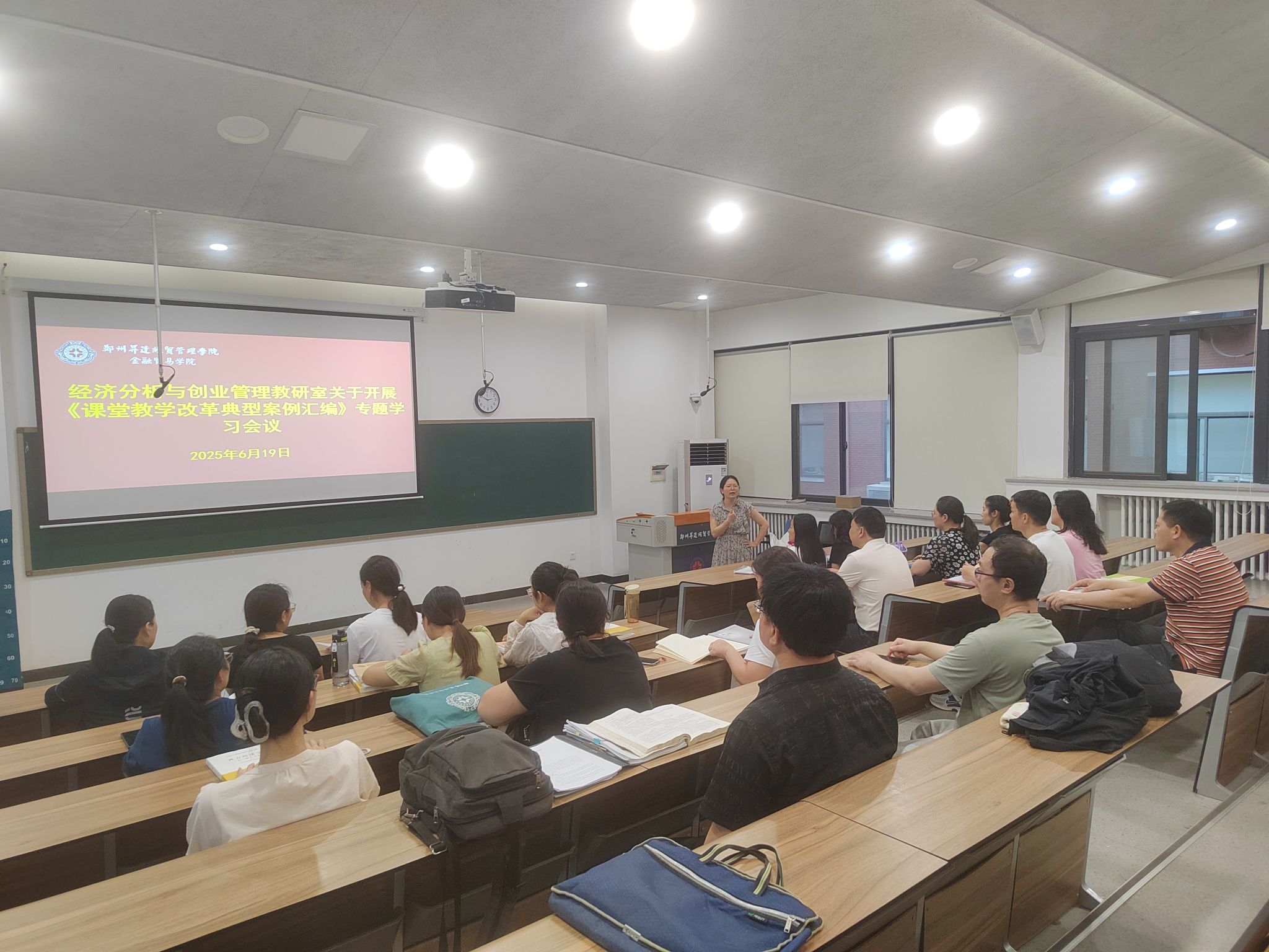 为进一步深化课堂教学改革内涵,赋能课堂教学提质增效,6月19日,经济分析与创业管理教研室全体成员在教学3号楼210教室召开《课堂教学改革典型案例汇编》专题学习会议。会议由教研室主任徐娜娜老师主持。